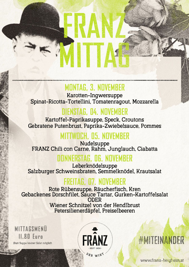 Die Schmankerl zu Mittag kommen immer von 11.30 bis 14.00 direkt am Bergheimer Dorfplatz auf den Teller.